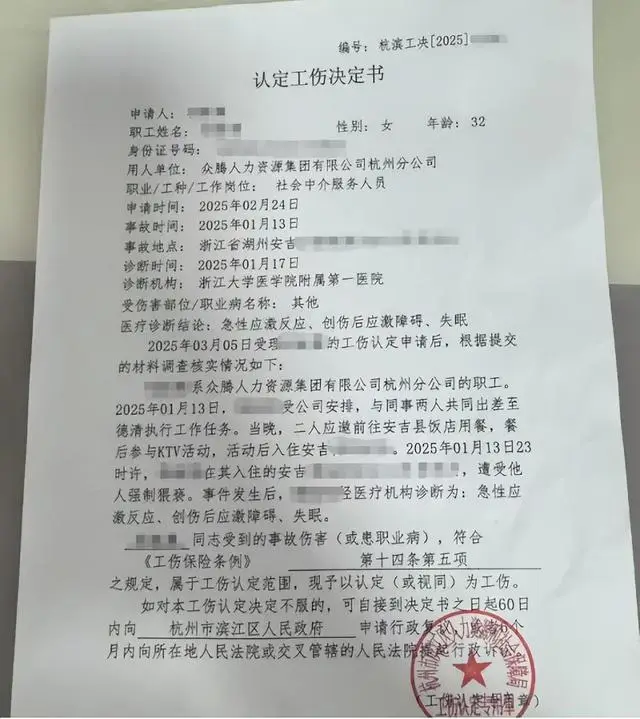 出差遭猥亵,杭州一女子申请工伤认定后依然难获赔偿