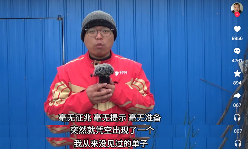 2025年12月12日,抖音博主、京东外卖众包骑手“末日刀口”发布视频,指控京东外卖在实际运营中,通过系统和算法强行向众包骑手“塞单”,构成事实上的强迫劳动。2025年10月10日午高峰,他在京东秒送骑士App上线后,在无任何提示、也没有选择权的情况下,系统直接向其账号加入新订单。该订单取货地距离其当前位置两公里以上,配送时间却不足30分钟。他向客服说明该单“并非自己接单”,请求取消遭拒,最终因未完成配送被罚款20元并扣除服务分。他形容当时的状态是“毫无选择权,只能被逼着干”。